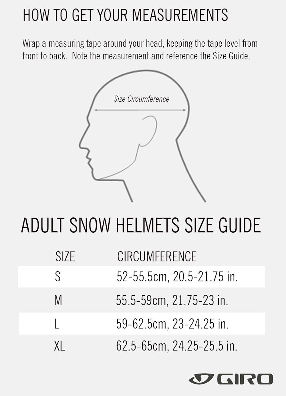 Skip to main search results. The red giro icon end of the tape should land on a measure between 50 and 65 centimeters, indicating the corresponding size in each of giro's helmet models. Snow & cycling helmets, snow & mtb goggles, cycling and mountain bike apparel, cycling and mountain bike shoes. These size charts and conversions are meant to serve as a guide. Since then, the company has revolutionized the helmet industry by committing to creating helmets that.